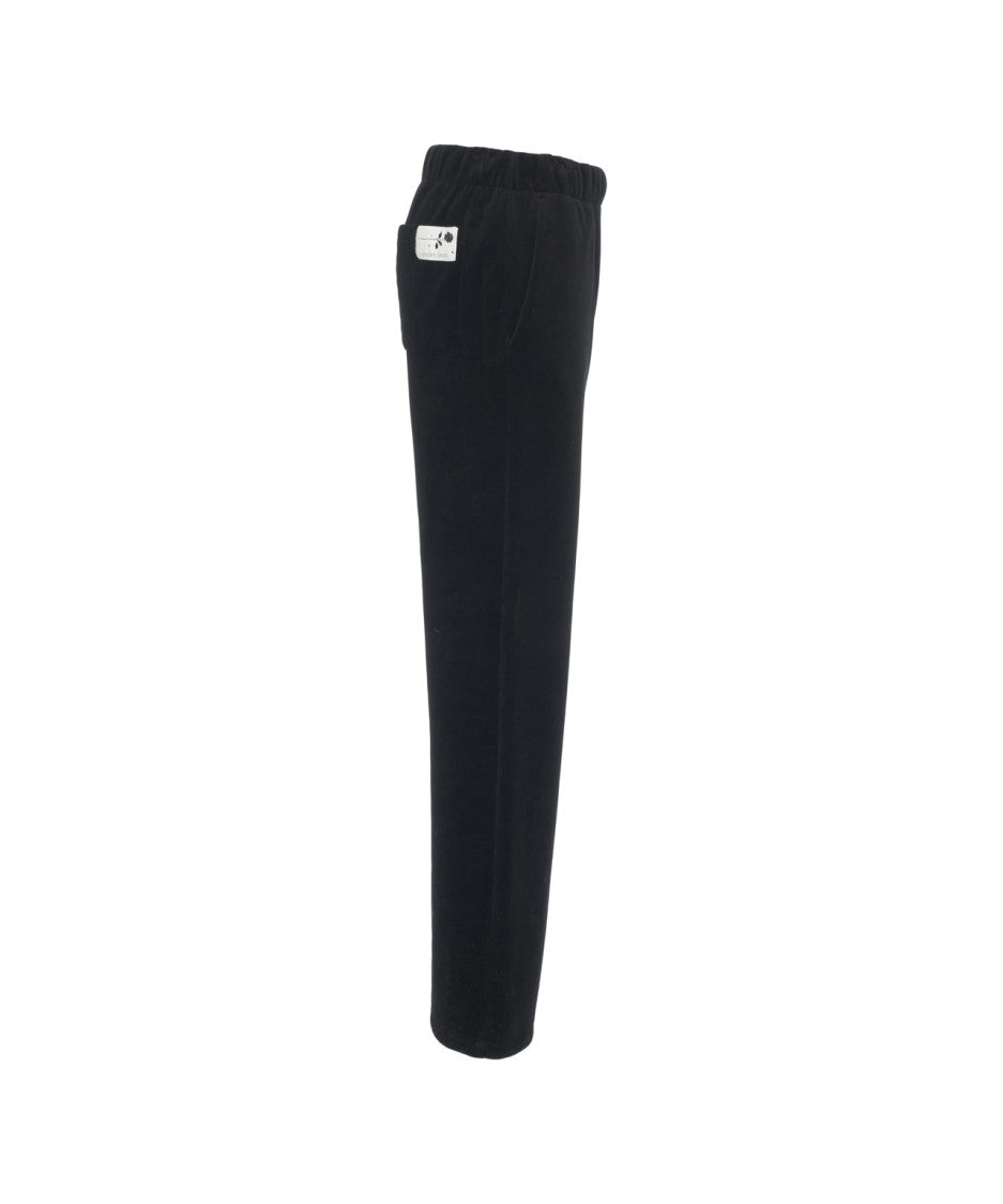 Golden Goose presents refined velvet joggers that embody effortless luxury. Crafted in Italy, these joggers feature a relaxed fit and plush texture for maximum comfort. The elastic waistband and wide legs allow for freedom of movement, while practical side and back pockets enhance their functionality. A subtle brand detail at the back adds a touch of elegance.
