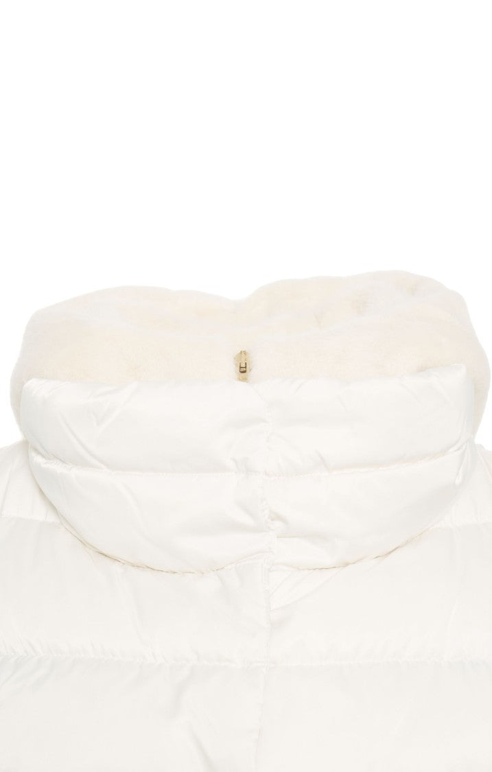 This HERNO down vest epitomizes refined comfort and sophistication, characterized by its sleeveless silhouette and luxurious faux fur-lined hood. Crafted with horizontal quilted sections filled with premium goose down and feathers, it offers warmth and a sleek aesthetic. The smooth matte finish and minimalist design ensure versatility for mid-season layering, making it an essential addition to any wardrobe.