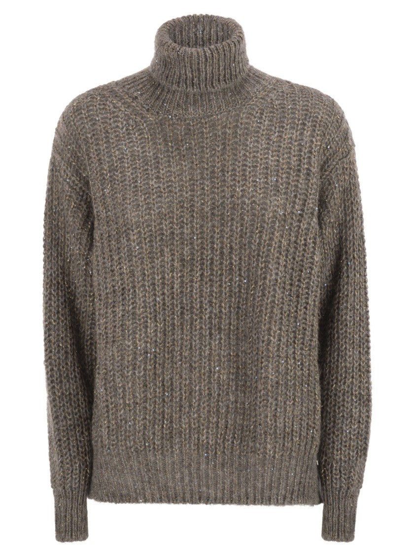 A luxurious turtleneck jumper by Herno seamlessly blends wool and alpaca fibers with a chic corn stitch and all-over sequin embroidery. This piece transforms a classic silhouette into a statement of elegance, perfect for sophisticated layering. The jumper features a relaxed fit, long sleeves, and ribbed edges, complemented by a subtle metal logo at the collar. Lightweight yet warm, it epitomizes timeless style and comfort for the discerning wardrobe.