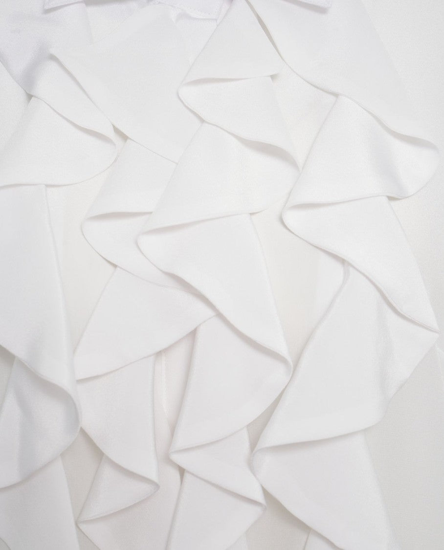 HIMON'S presents a blouse that blends timeless elegance with modern artistry. Voluminous ruffles cascade gracefully down the front, complemented by a classic pointed collar and long sleeves with refined buttoned cuffs. A delicate button closure enhances the sophisticated silhouette, while the smooth texture provides a luxurious feel, making it a great addition to any refined wardrobe.