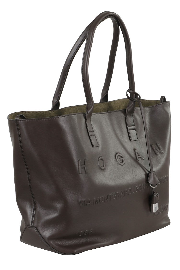 The Hogan Script Medium Bag is an elegant accessory made from 100% pelle leather, showcasing a rich brown finish. Its spacious design caters to both casual and sophisticated outings. An embossed Script logo adds a unique touch, while double top handles provide easy carrying. A removable interior pouch enhances organization, making it a great choice for contemporary lifestyles.