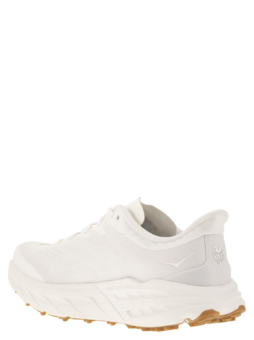 Hoka's Speedgoat 5 running shoes elevate trail performance with a cutting-edge design. The technical double-layered jacquard mesh upper guarantees breathability and lightweight agility. Designed for technical trails, these shoes feature a Vibram® Megagrip sole for outstanding traction and stability on tough terrains. Comfort is enhanced by a reinforced toe and flat gusseted tongue, while the cushioned EVA midsole offers excellent support. Ideal for adventurous runners, these sneakers empower you to tackle any path confidently.