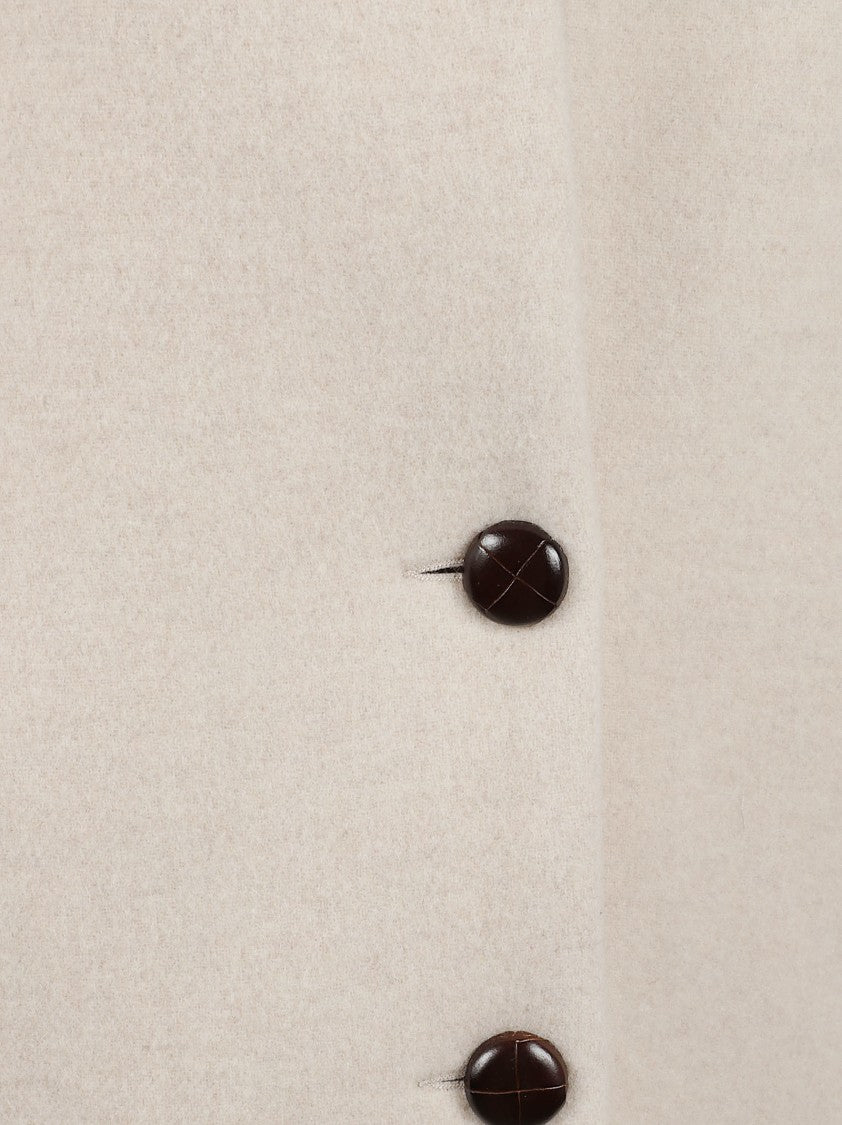 Short coat by Isabel Marant embodies refined minimalism, showcasing a structured silhouette with elegant lateral folds. Enhanced by a V-neckline and a closure of two covered buttons, this piece is complemented by two lateral welt pockets for practical sophistication. Crafted from a soft blend of wool and polyamide, it offers a textured finish that enhances everyday wear.