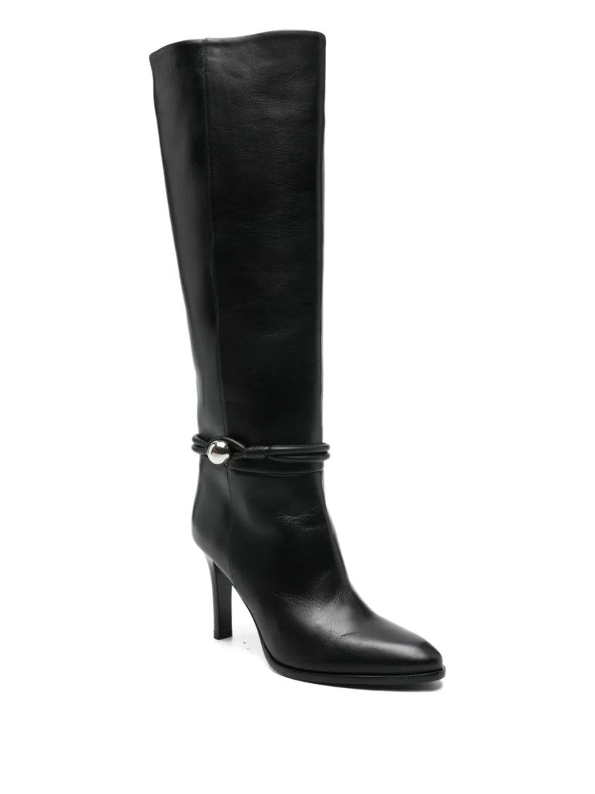 The Ieva high boots by Isabel Marant embody sophistication and elegance. Crafted from smooth calf leather, these boots feature a pointed toe and a sculpted mid-height heel, enhancing their refined silhouette. A leather strap with a metallic button detail wraps around the ankle, while the sleek leather sole ensures a luxurious feel with every step. This timeless pair is a must-have for any discerning wardrobe.