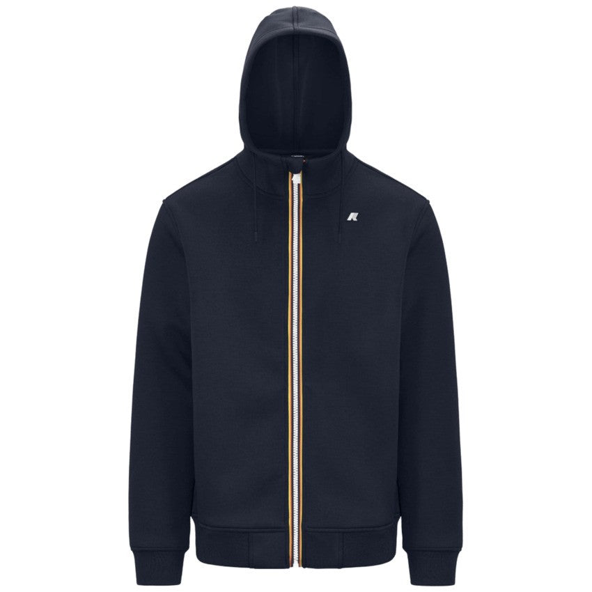 The Rainer jacket by K-Way is a versatile men's outerwear piece crafted from lightweight scuba fabric that combines warmth and flexibility, ensuring exceptional comfort and freedom of movement. Showcasing a regular fit, it features a matte finish interlock texture. Functional elements include a hood with drawstrings, a contrasting zip closure, ribbed cuffs and hem, and practical side pockets. A subtle silicone logo on the chest enhances its sporty aesthetic.