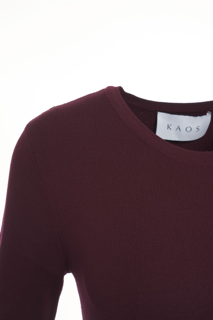 Kaos presents an exquisite maxi dress that embodies the essence of sophisticated style. Crafted from premium ribbed knit fabric, this creation features a slightly fitted waist that gracefully transitions into a flared skirt, enhancing movement and versatility. Long sleeves and a classic round neckline complete the silhouette, rendered in a rich burgundy hue that evokes a sense of warmth and elegance. Ideal for both casual outings and refined gatherings, this dress is a perfect addition to any discerning wardrobe.