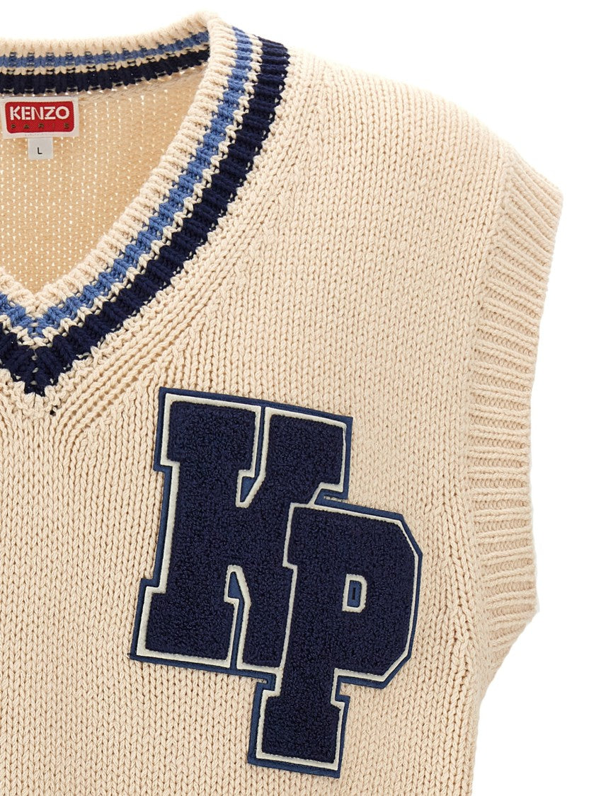 This textured knit vest from Kenzo is crafted from a luxurious blend of wool and cotton. The V-neck design and sleeveless style are complemented by a front logo patch and a chic striped neckline, making it suitable for both casual and sporty occasions. Its exceptional quality and contemporary aesthetic make it a must-have in any men's wardrobe.