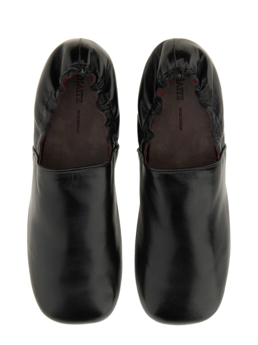 Khaite introduces the Dancer 'Banks' slip-on shoes, showcasing exceptional Italian craftsmanship. With a minimalist design, these shoes boast a soft leather exterior complemented by a gathered elastic detail, radiating sophistication. Their smooth finish enhances the refined look, making them suitable for any occasion, from day to night.