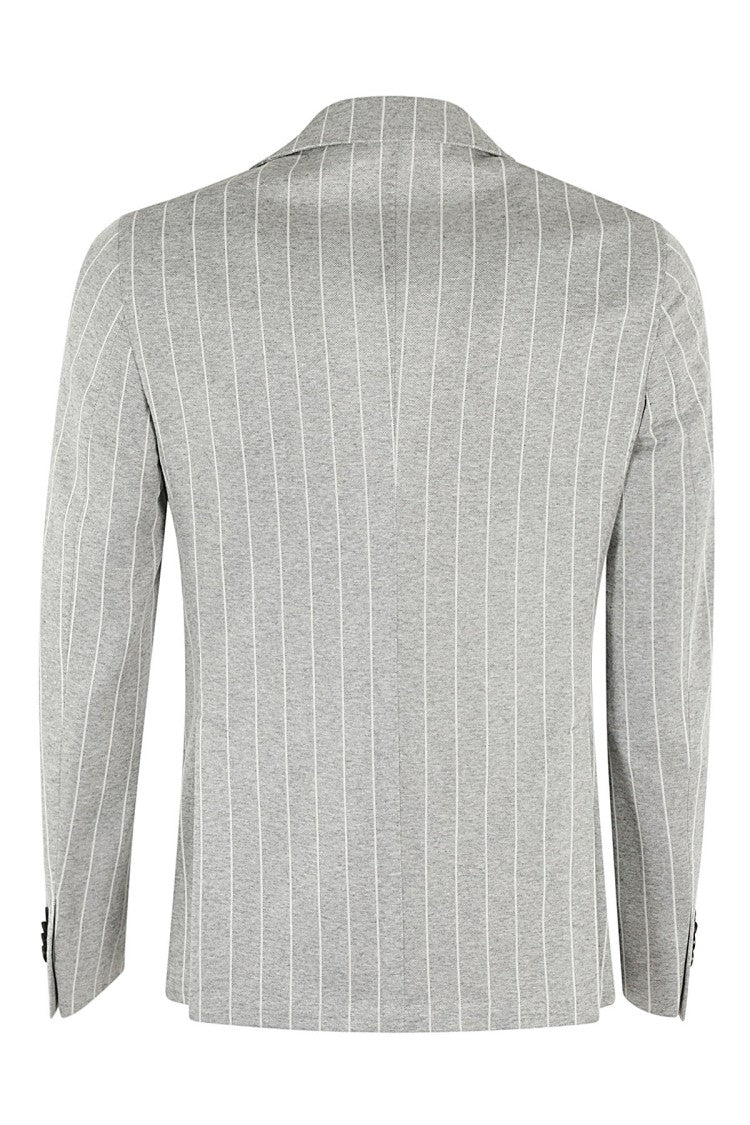 L.B.M. presents a refined pinstripe suit that epitomizes classic tailoring. The structured blazer features a notch lapel, eyelet detail, and multiple pockets for functionality. The lightweight fabric ensures comfort, while the drawstring waist pants offer a personalized fit, making this ensemble a perfect choice for sophisticated occasions.