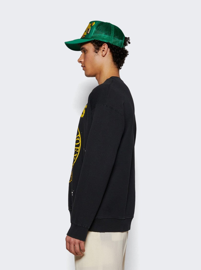 Madeworn presents a regular fit long-sleeve tee featuring a classic crewneck and a striking distressed finish. The bold printed graphic showcases 'THE RAMONES' with an emblem, capturing the essence of rock culture. A straight hem completes the casual silhouette, perfect for streetwear fans.
