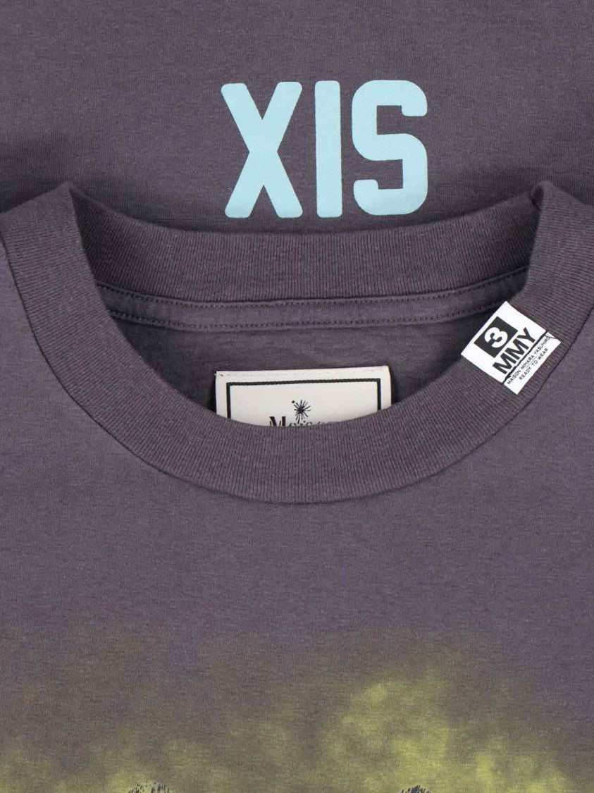 This oversized t-shirt features a playful smiley face graphic on the front and bold text on the back. Made from premium grey cotton jersey, it has a classic crew neckline and ribbed finishes for a relaxed fit that combines comfort with a modern look. Two logo patches are on the front, with an extra patch on the sleeve, highlighting the brand's distinctive style.