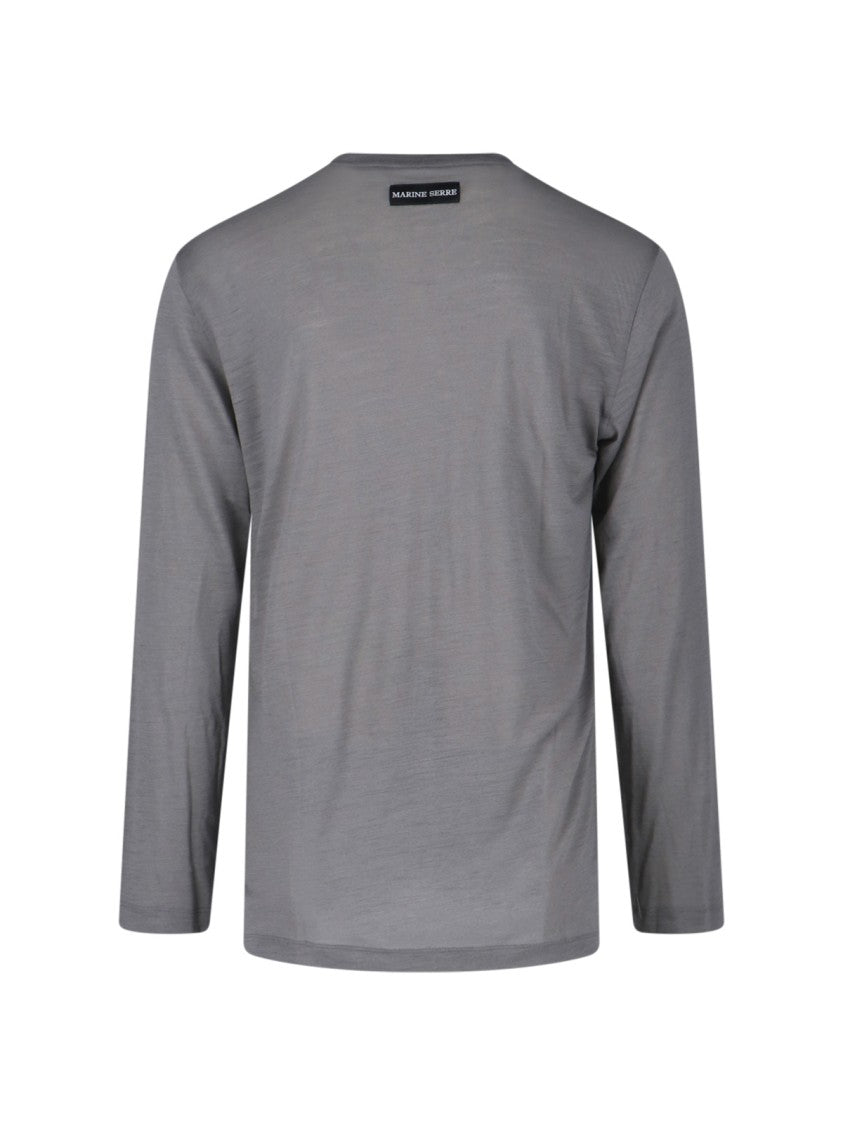 This trio of versatile t-shirts by Marine Serre showcases a blend of styles for ultimate comfort. Featuring a long-sleeved grey shirt, a classic short-sleeved red option, and a sleeveless black design, each shirt is adorned with a subtle circular logo detail on the chest, reflecting an understated elegance. Crafted for both men and women, this collection epitomizes everyday luxury, making it perfect for casual outings or relaxed gatherings.