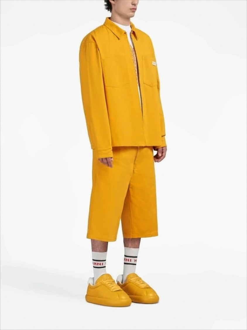 Enhance your casual style with this Marni short-sleeve T-shirt, featuring a bold floral graphic on the front. Made from 100% Italian cotton, the shirt showcases intricate patterns of black letters on a vibrant orange background, reflecting artistic flair. A relaxed fit and crew neckline provide comfort, while a subtle green logo detail on the upper back adds uniqueness.