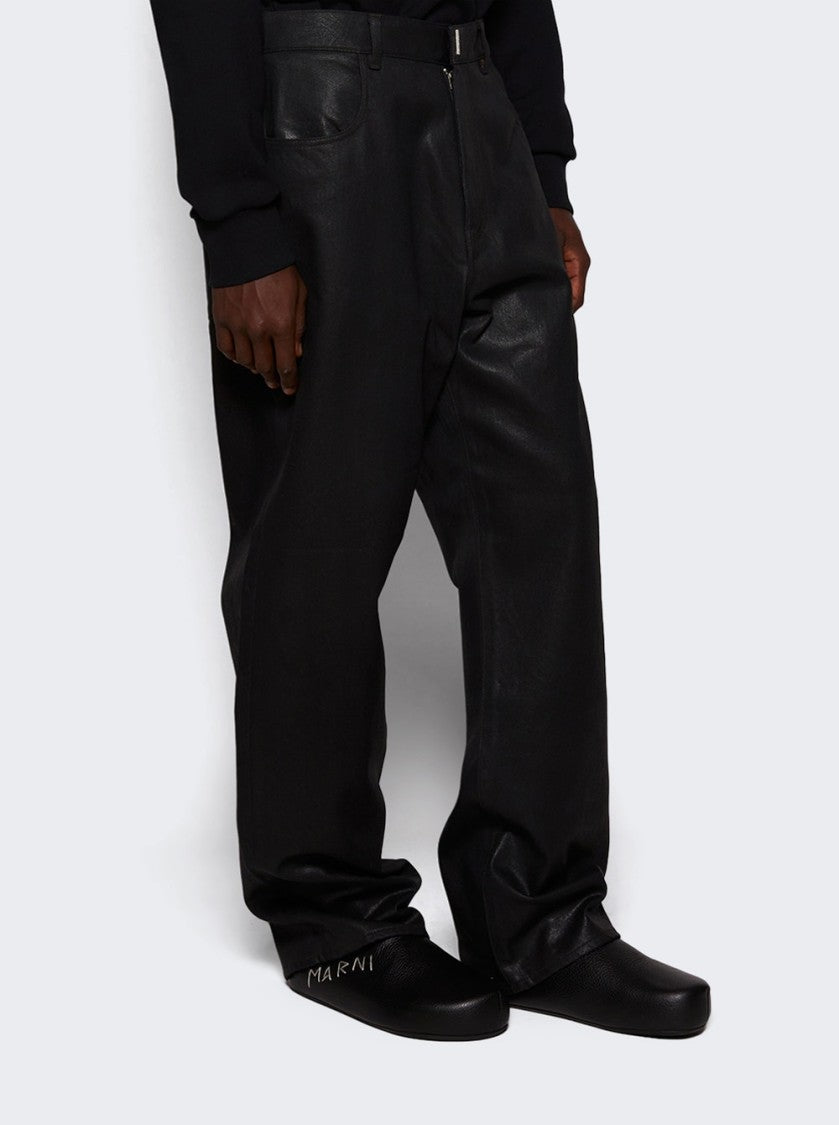 Marni presents a refined pair of Fussbett Sabot Shoes, embodying minimalism and casual sophistication. Crafted from plush calf leather, these slip-on shoes feature a rounded toe design complemented by a ribbed rubber sole for optimal comfort. The branded insoles enhance the luxurious feel, ensuring a barefoot sensation with every step.