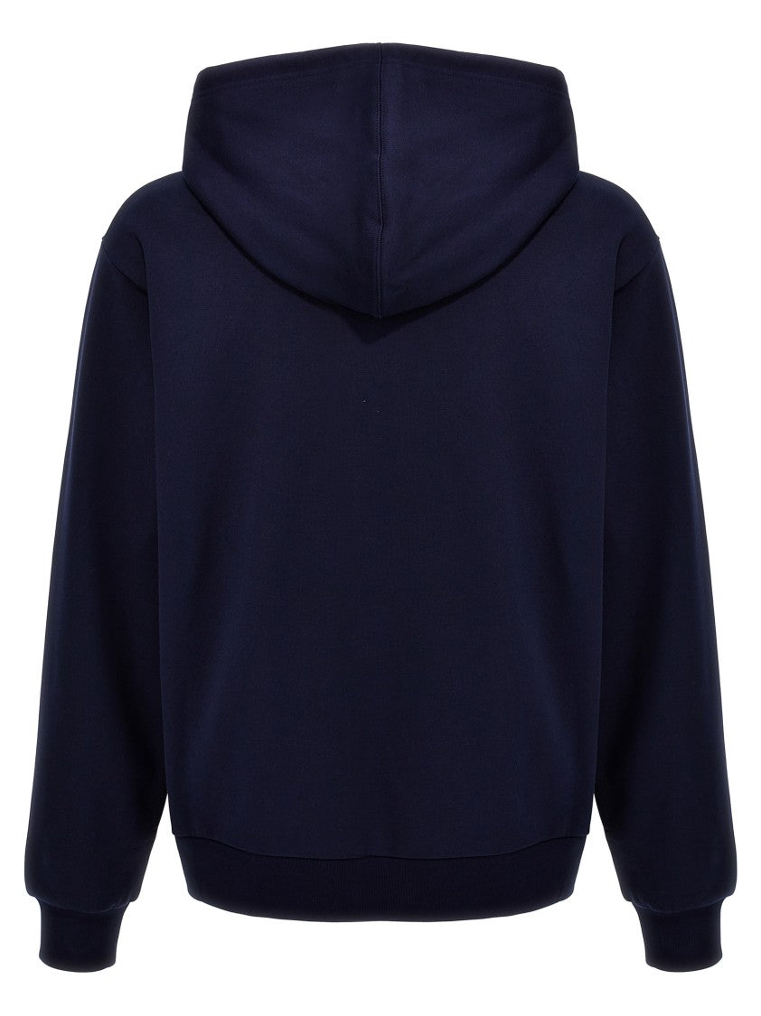 Elevate your casual wardrobe with this cotton hoodie by Marni, showcasing a prominently displayed front logo print that signifies contemporary street style. Its relaxed fit and spacious kangaroo pocket offer practicality while the long cuffed sleeves provide warmth and comfort, making it perfect for layering or solo wear.