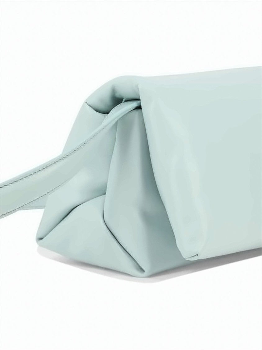 A refined rectangular crossbody bag showcases minimalist sophistication. Crafted from sumptuous blue leather, this piece includes a long strap and a functional flap closure with a subtle clasp. Inside, a zippered pocket enhances organization, making it perfect for casual outings.