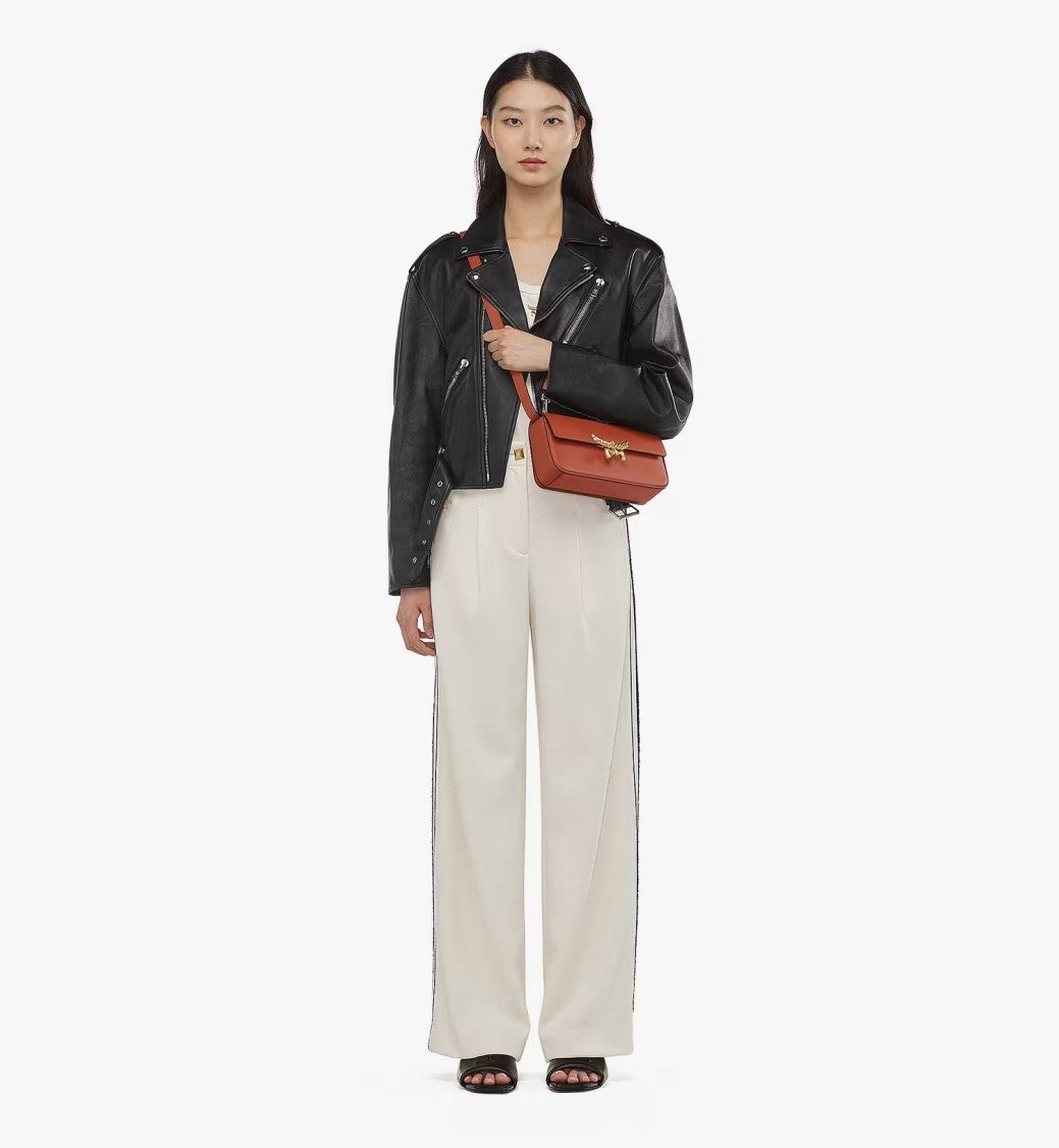 The Himmel collection by MCM showcases exceptional craftsmanship with a structured shoulder bag made from 100% Spanish calf leather. The bag is secured by the iconic Laurel emblem logo lock closure, adding a touch of elegance. An adjustable strap provides versatility in wear, while the microfiber lining with a suede finish elevates its luxurious appeal. Practical card slots in the interior make it suitable for daily use or special events.