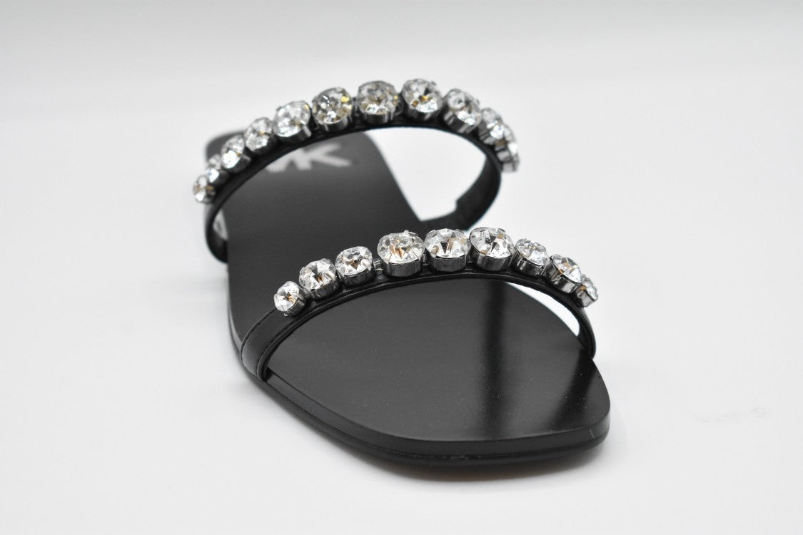 Step into comfort with these MICHAEL KORS black leather Sandals for women. The elegant design enhances your look while providing versatility for various occasions. Enjoy the blend of style and quality with these fashionable footwear.