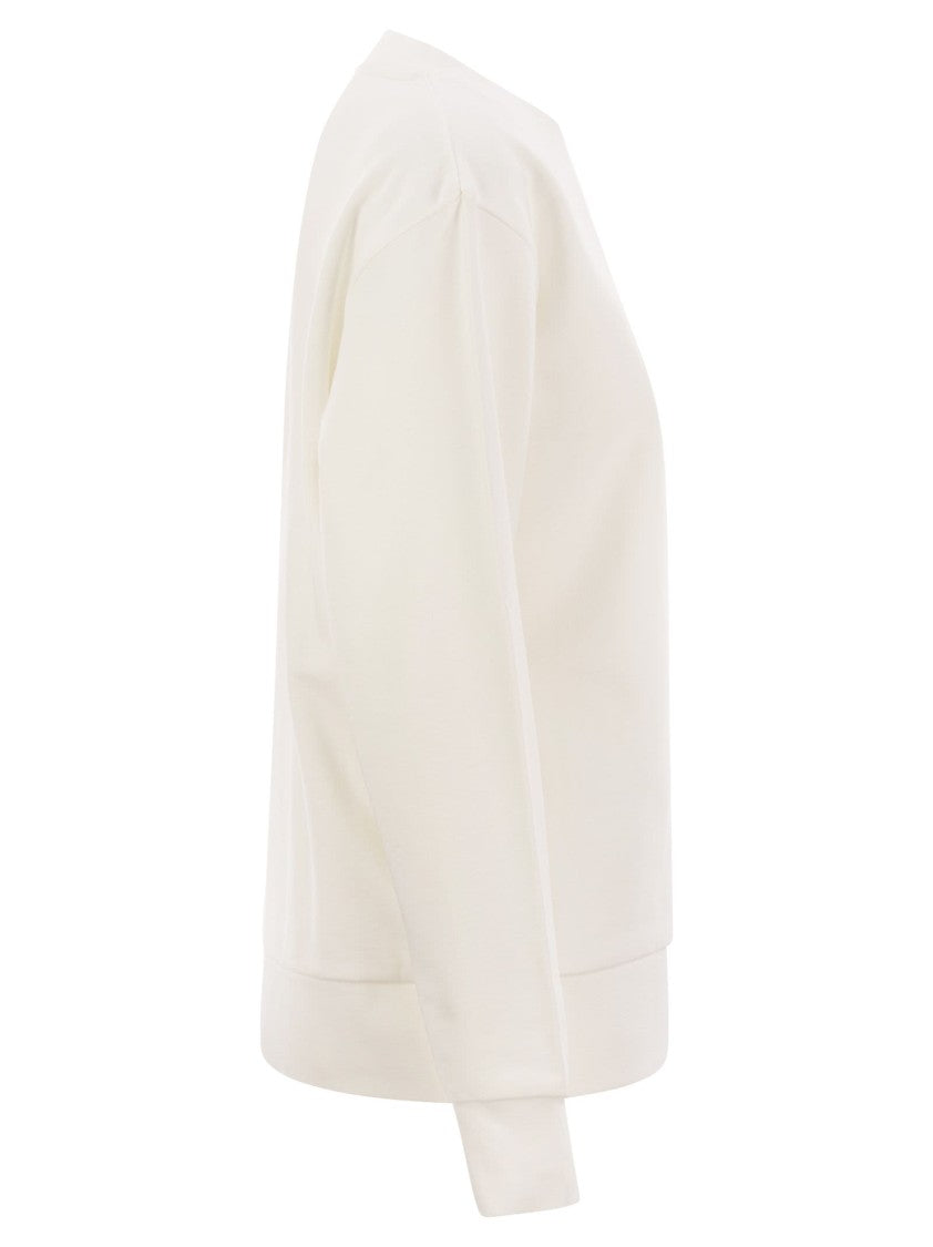 Moncler introduces a cotton jersey sweatshirt that enhances casual attire with a touch of elegance. Its loose fit and ribbed crew neck provide comfort, while the crystal-embellished logo draws inspiration from light. Ideal for contemporary lifestyles, this garment offers a modern take on a feminine classic.