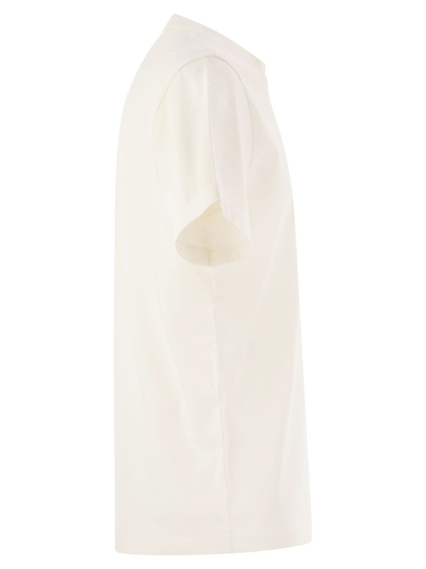 Moncler offers a refined men’s T-shirt that combines comfort and style. Made from 100% organic cotton jersey, it features a classic crew neck and a soft texture, enhanced by a subtle textured logo at the front. Short sleeves and a regular fit make it a perfect layering piece for casual outfits.