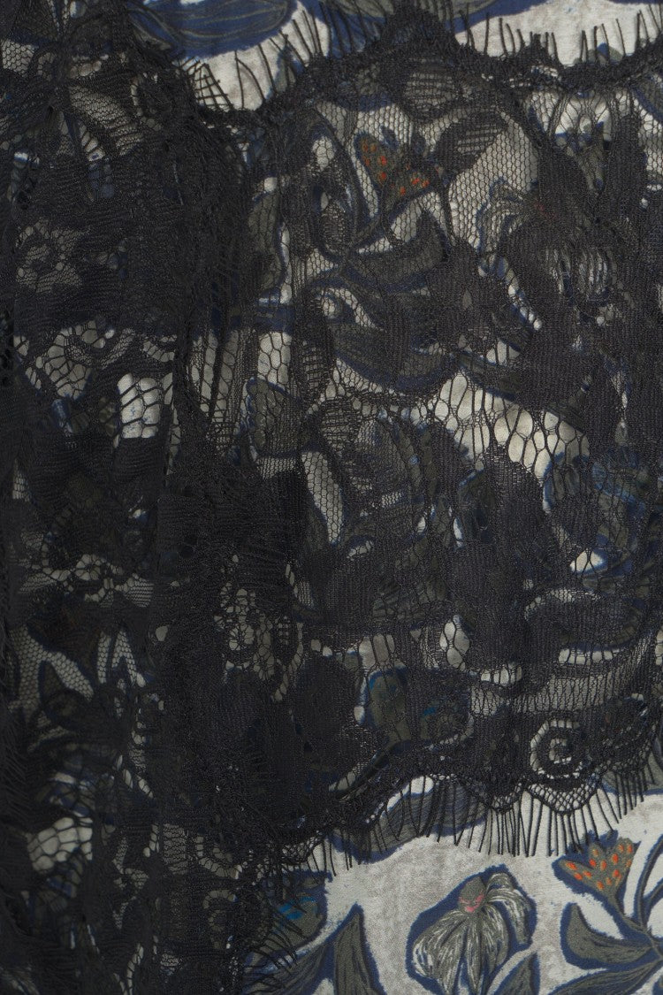 MUNTHE's lace midi dress showcases elegance and femininity with its high collar and long sleeves. The delicate black lace overlays paired with a floral print beneath add intricate layers, finishing with a slightly flared hem and a keyhole back closure. Perfect for special occasions, this dress embodies sophistication and charm.