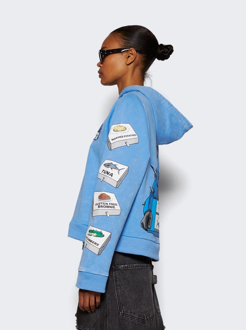 A stunning zip-up hoodie by Natasha Zinko features vibrant graphics across the front, sleeves, and back. Made from enzyme-treated fabric, it provides a unique texture that enhances its playful illustrations. Tailored for an ideal fit, this piece embodies contemporary streetwear.