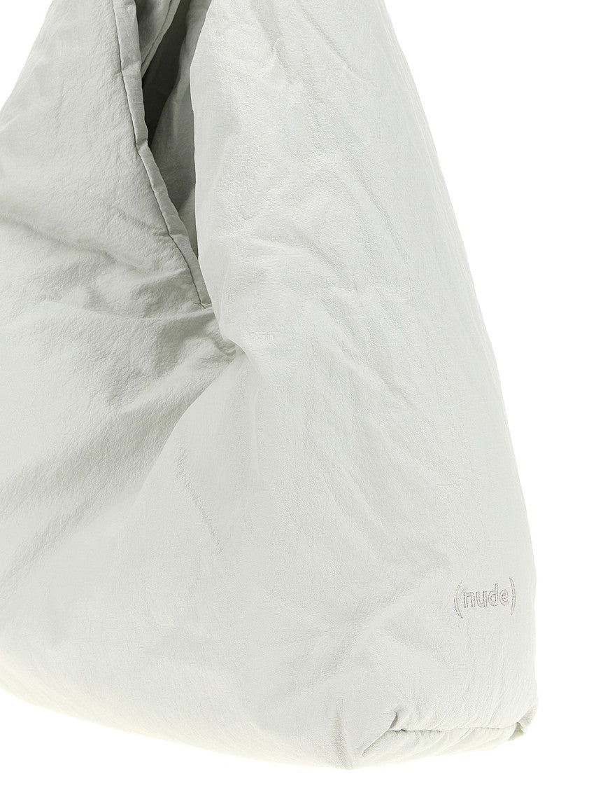 NUDE offers a shoulder bag that embodies modern elegance. This hobo-style bag showcases a distinctive padded crinkled effect fabric, merging luxury with casual sophistication. A fixed handle and magnetic closure enhance practicality, while a tone-on-tone embroidered logo provides a hint of exclusivity. Inside, a secure zip pocket ensures organized storage, making it both a stylish statement and a functional accessory for everyday use.