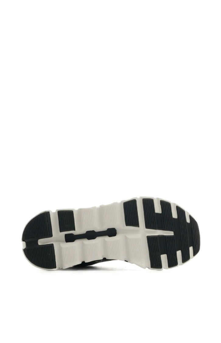 On Running presents the CLOUD 6 sneakers, designed for the modern woman who values both style and performance. These sneakers showcase a low-profile silhouette with a breathable black mesh upper crafted from recycled polyester, promoting sustainability. The distinctive white segmented sole features a hollowed-out structure that provides lightweight cushioning and exceptional flexibility, making each step feel effortless. Subtle branding and reflective details add a touch of sophistication, ensuring you stand out whether on the track or the streets.