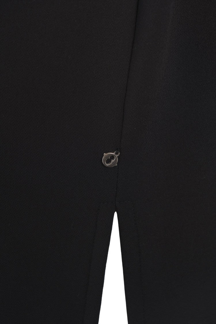 This oversized blouse from Ottod'Ame features a relaxed silhouette highlighted by a pointed collar and long sleeves with buttoned cuffs. A deep V-neckline and subtle side slits contribute to its elegant design, complemented by a small metallic logo near the hem for added refinement. Made from a smooth blend of high-quality materials, this blouse offers versatile styling options for any wardrobe.