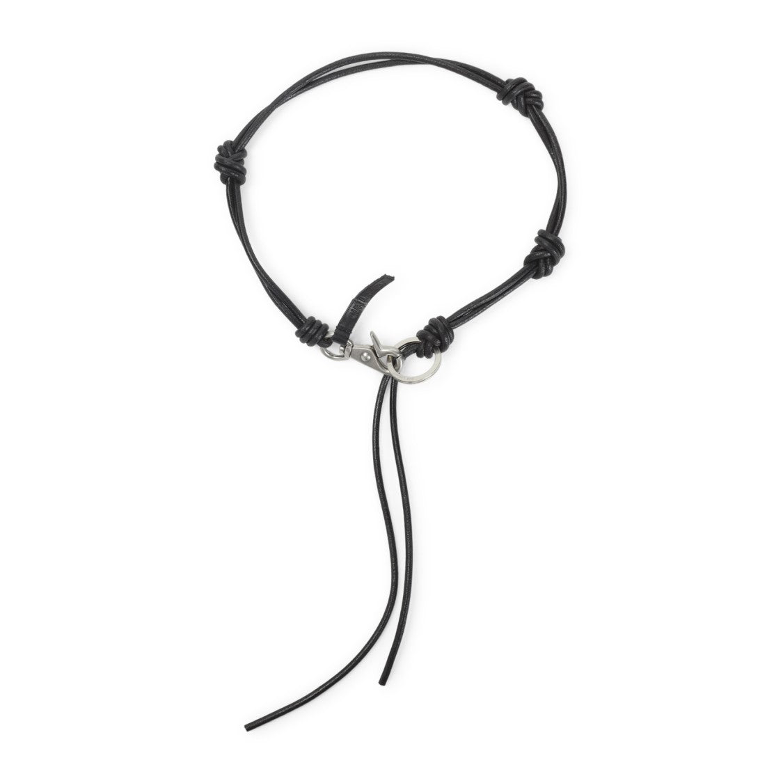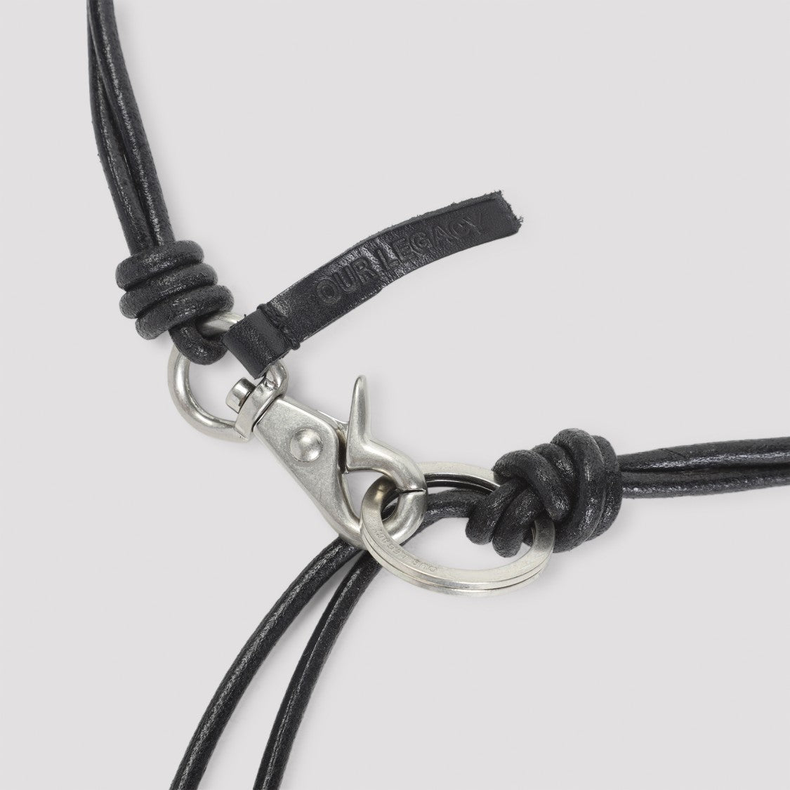 Our Legacy introduces the A4258UB clutch, showcasing minimalist elegance in premium black cow leather. This compact accessory is designed for essentials, enhancing your style while radiating sophistication. Alongside the clutch, a minimalist bracelet made of intertwined black leather cords features knots, a silver-toned metal clasp, and a delicately embossed leather tag with subtle branding. It represents the essence of understated luxury.