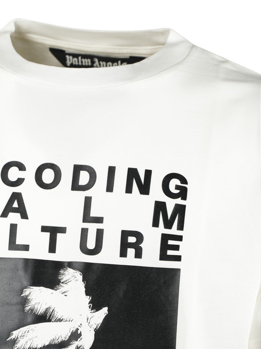 Palm Angels offers a relaxed-fit t-shirt that embodies casual sophistication. Made from 100% cotton, it features a round neckline and short sleeves. The front showcases a bold graphic print with striking palm tree imagery and text, while the plain back keeps it clean and understated. Ideal for showcasing your unique style in streetwear fashion.