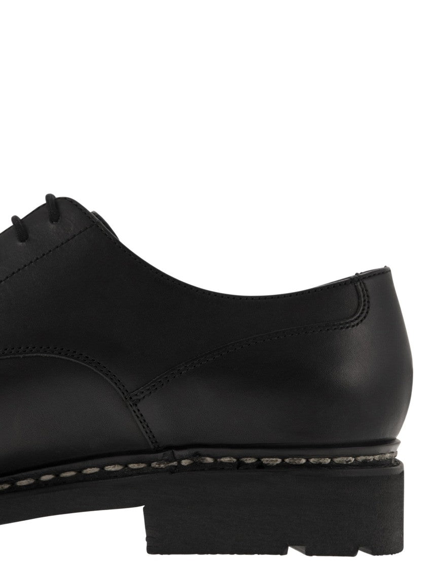 The Chambord Derby shoe by Paraboot exemplifies exceptional craftsmanship, drawing inspiration from the grand Loire châteaux. A smooth leather upper features a unique short bowl design, complemented by 45° topstitching that reflects the brand's meticulous attention to detail. The luxurious patterned leather lining enhances its elegance, while the robust rubber sole, made using traditional Norwegian methods, guarantees durability and comfort. Tailored for those with slim feet, this classic model is distinguished by its elegant silhouette and sophisticated charm.