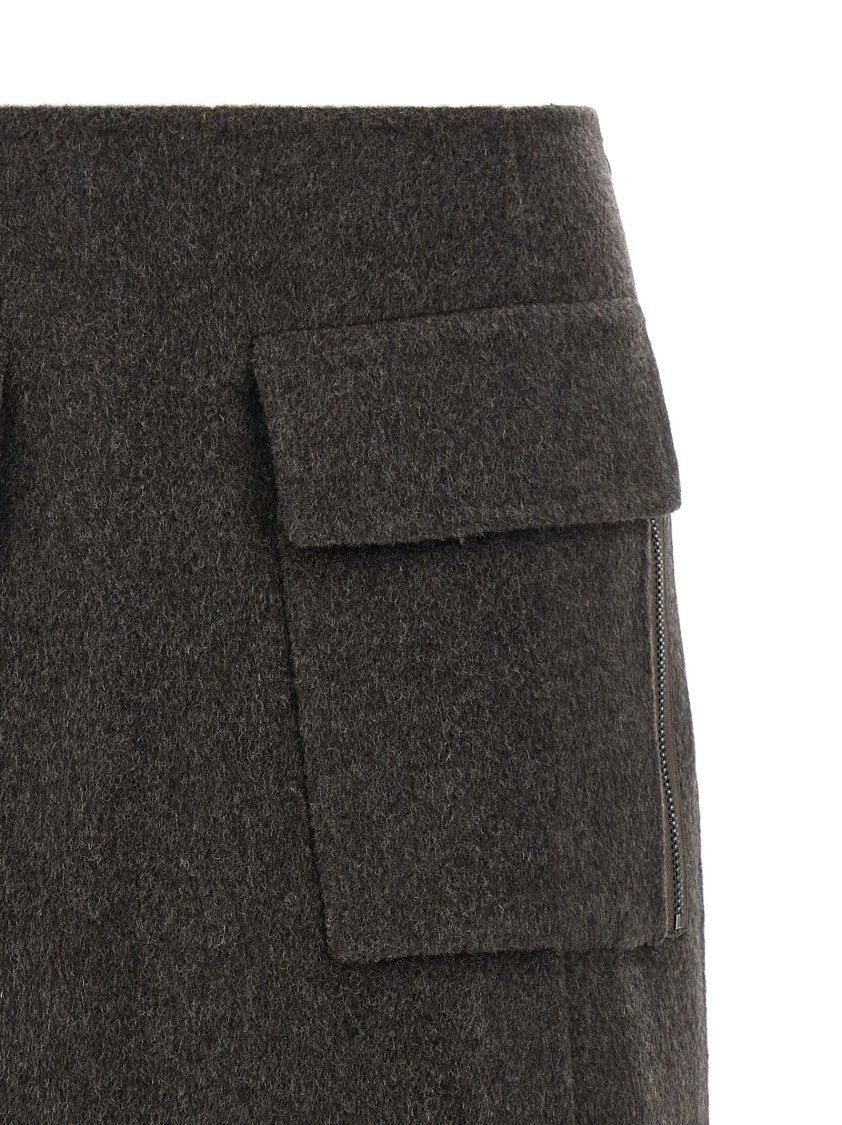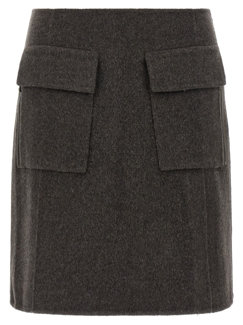 Crafted by P.A.R.O.S.H., this double wool mini skirt is designed for the modern woman who values both style and functionality. Its textured finish adds a unique character, while the fitted silhouette flatters the figure. The skirt features two front flap pockets with zippers for practical elegance, a striking front split for a touch of allure, and a secure side zip closure. Perfect for casual outings, this piece embodies contemporary sophistication.