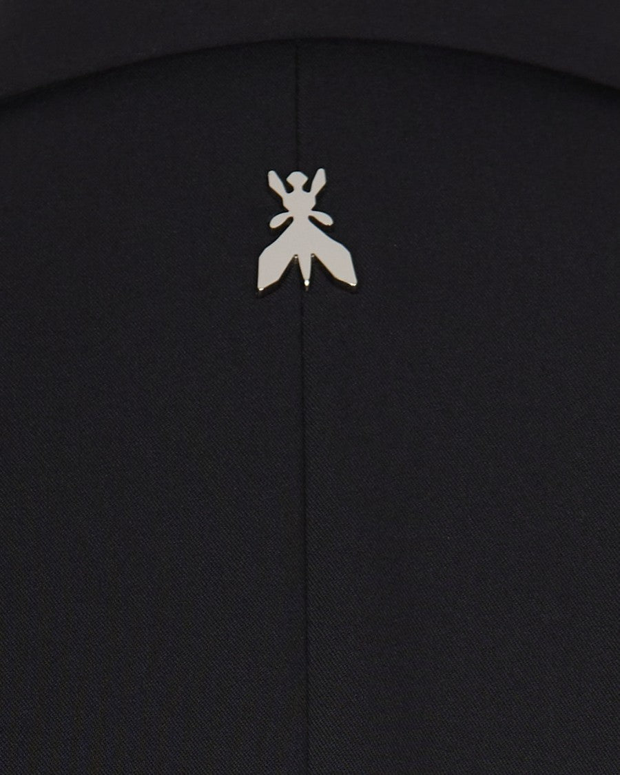 Patrizia Pepe offers an oversized double-breasted blazer made from a luxurious viscose blend. Broad shoulders and long sleeves with buttoned slits enhance the tailored silhouette. A notched lapel collar and a subtle metallic fly logo at the back add distinctive charm, making it essential for the modern woman's wardrobe.