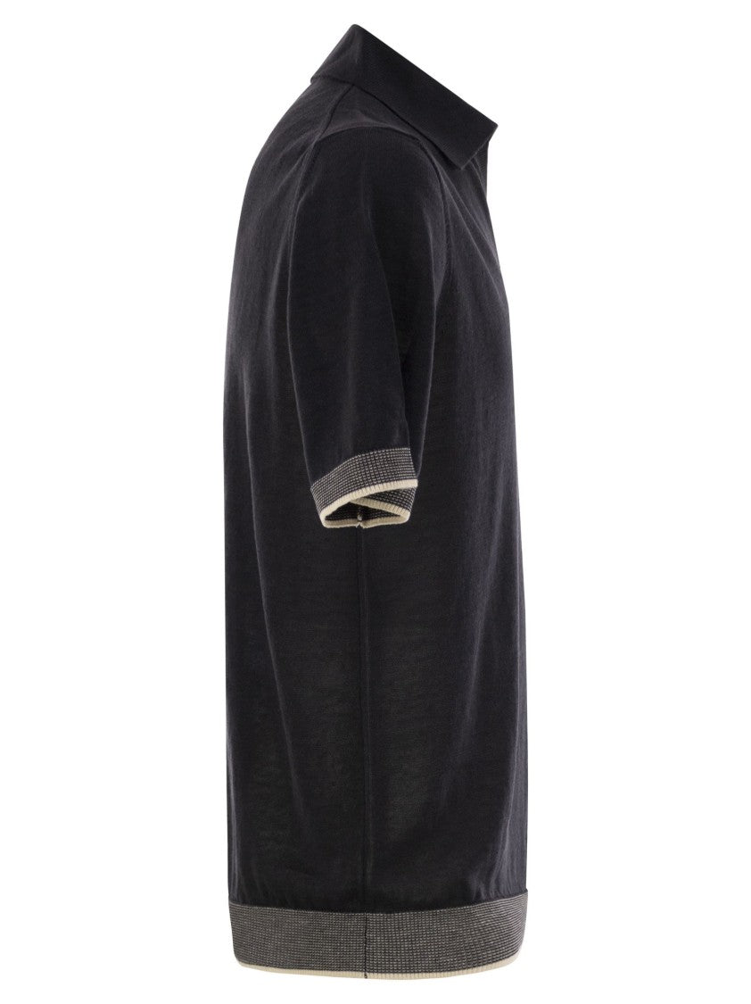 A refined polo shirt from Peserico features a blend of linen and cotton for breathability and lightweight comfort. Its satin finish provides a smooth surface, complemented by an open collar design and ribbed trims with contrasting stripes. Tailored for a regular fit, this versatile piece pairs well with light trousers or jeans, making it an essential addition to any modern wardrobe.