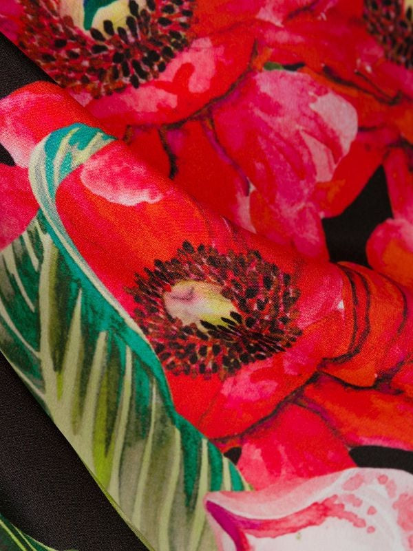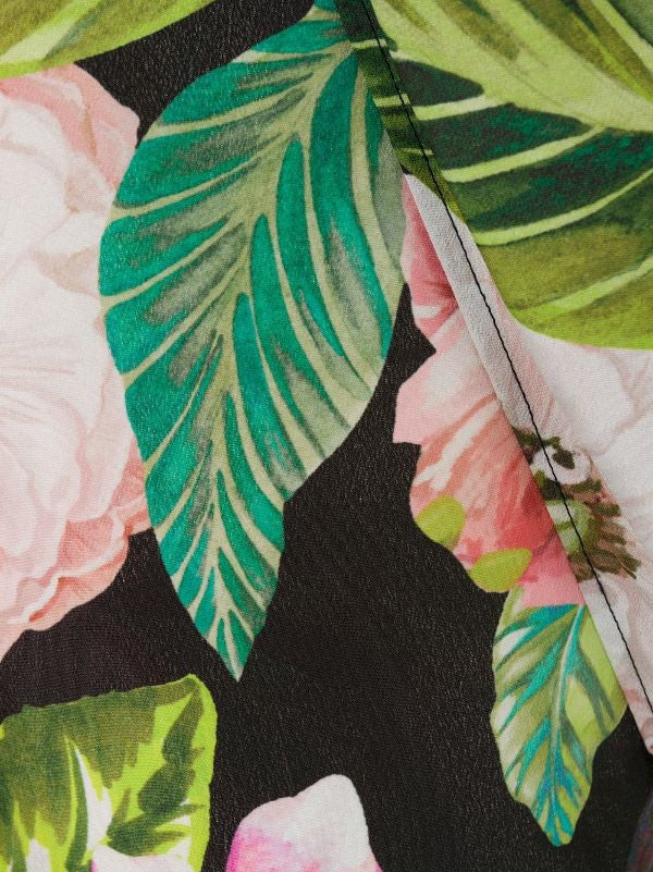 Experience the charm of the Philipp Plein floral print mini dress, a perfect blend of casual elegance. This captivating piece features a vibrant floral design with oversized blooms and rich greenery set against a dark background. A delicate lace trim at the neckline enhances the flattering shape, while the lightweight fabric provides comfort for any event.
