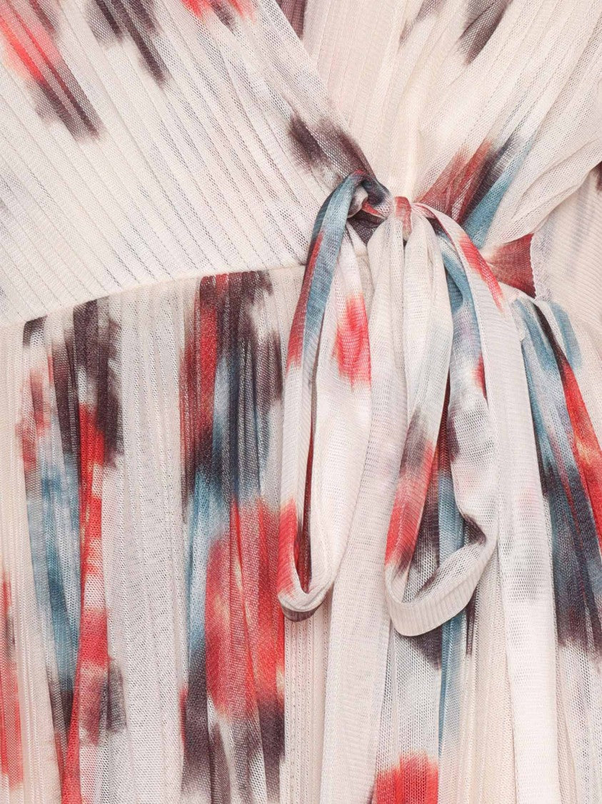 This midi dress by Philosophy Di Lorenzo Serafini showcases a stunning multicolor floral pattern made from lightweight 100% polyester. The flowing silhouette enhances movement, making it perfect for spring and summer occasions. A wrap design cinches at the waist, while soft, fluttery sleeves add a graceful touch to your look.