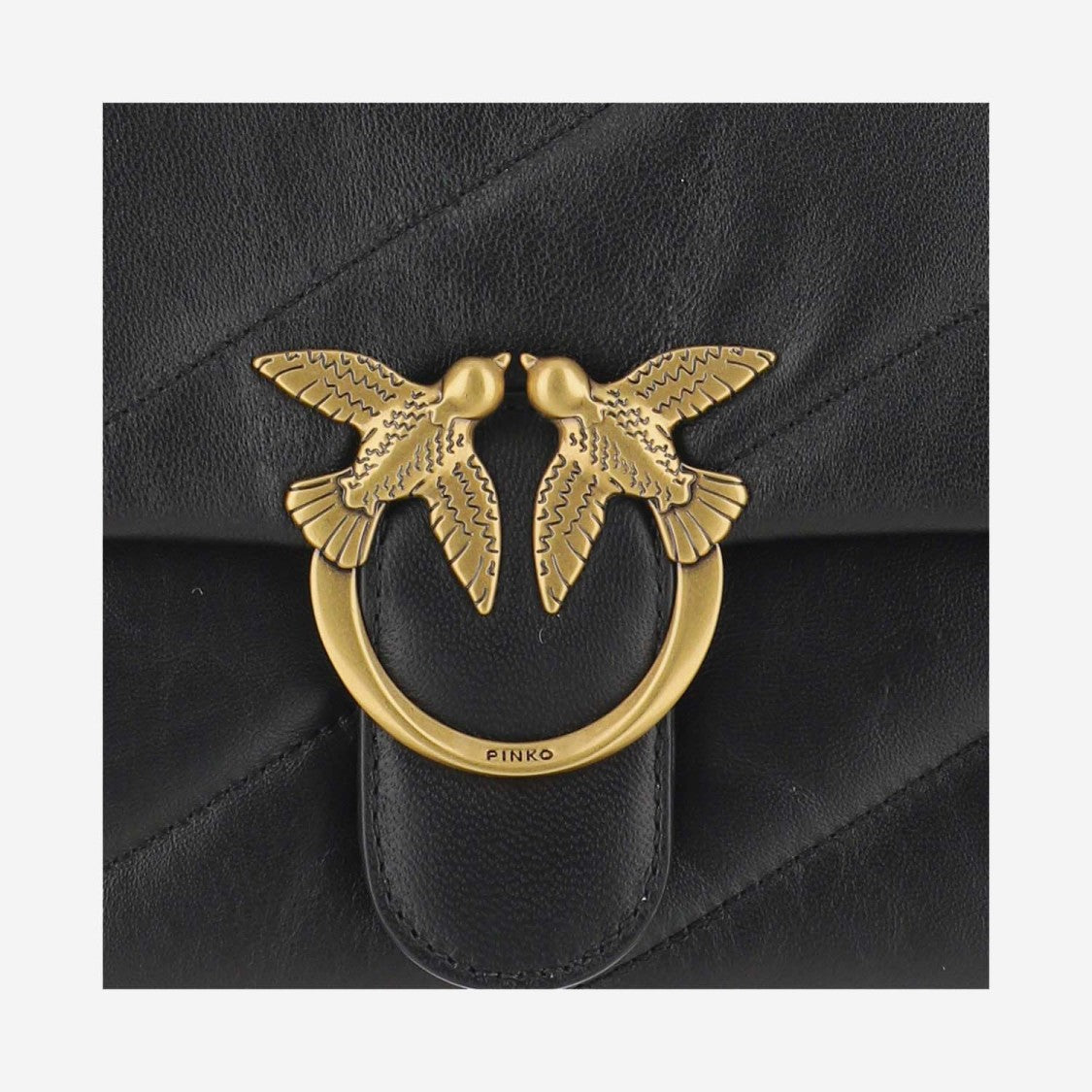 Pinko presents the Love Classic Puff Bag, a quintessential accessory for the discerning individual. Crafted from luxurious soft nappa leather, this bag features a distinctive quilted design that exudes sophistication. The flap closure, adorned with the signature Love Birds Diamond Cut buckle in antique gold metal finish, adds a statement element. The chain shoulder strap, complemented by a leather pad for comfort, allows for versatile styling. Inside, experience the practicality of two spacious compartments including a center zipper pocket, all enveloped in sumptuous microfiber lining.