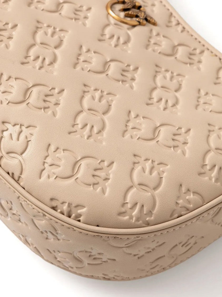 Pinko presents the Mini Love Bag Shoulder Bag, a perfect blend of style and practicality. Crafted from 100% cow leather, its soft embossed exterior showcases a subtle logo pattern. The elegantly curved silhouette features a single adjustable strap for versatile wear. Designed with ample interior space for essentials and secured with a zip closure, this bag embodies casual sophistication.