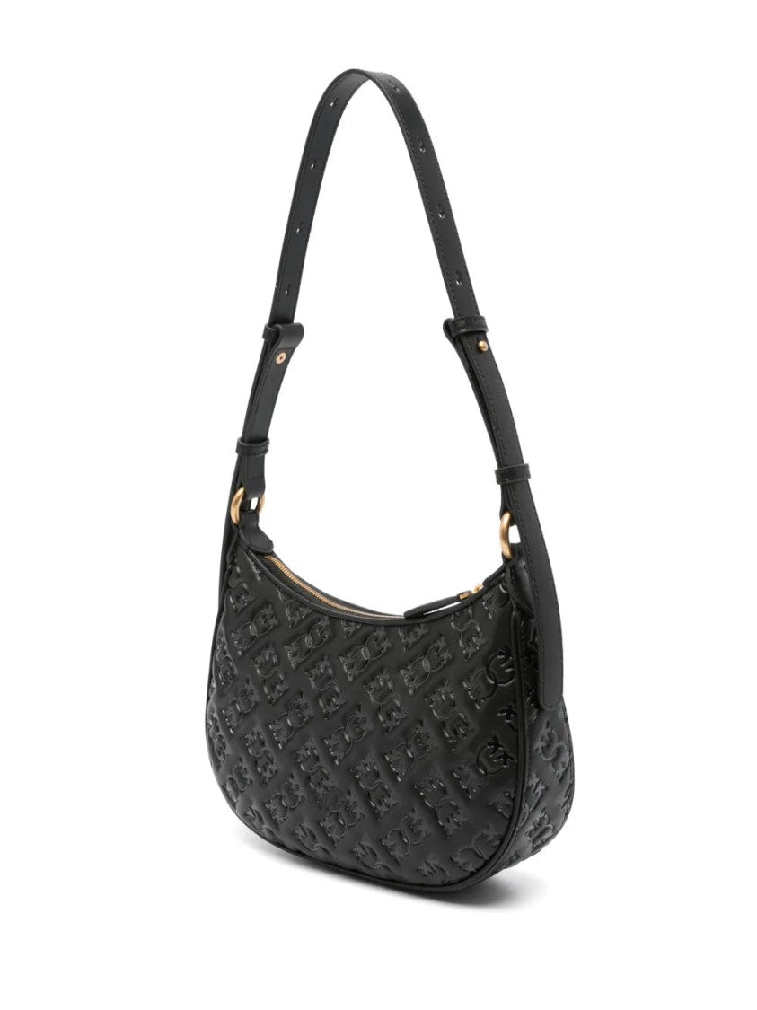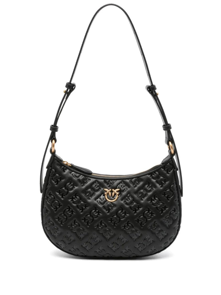 The Mini Love Bag by Pinko combines casual sophistication with a sleek curved silhouette made from cow leather. Its textured exterior features gold-tone hardware and a functional zip closure. An adjustable strap adds versatility, making it suitable for various outings.