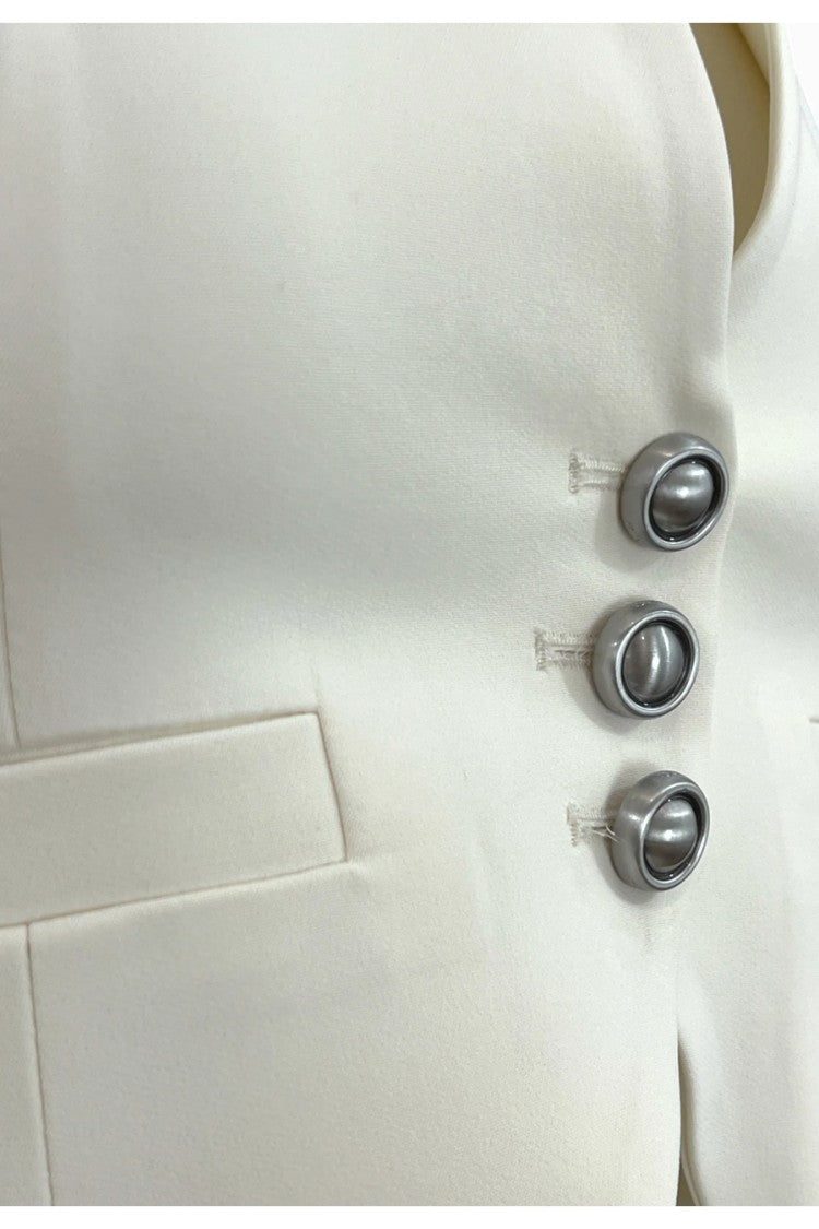 The Pinko coat combines luxury and comfort with its unique blend of viscose and elastane. The sleeveless style features a deep V-neckline and a fitted silhouette that flatters the figure. Three prominent buttons on the front enhance its sophisticated appeal, making it a versatile addition to any wardrobe.