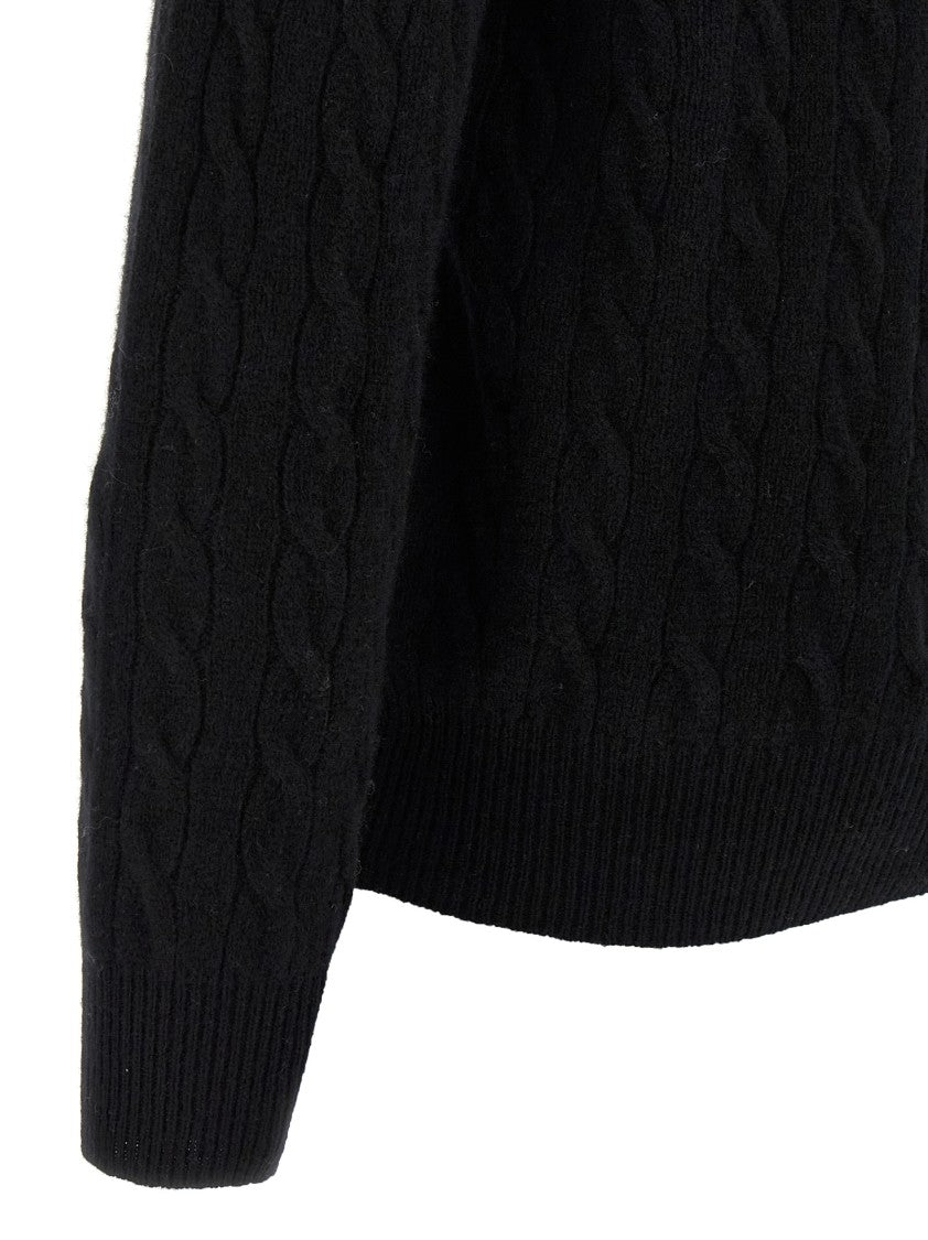 This long-sleeved polo shirt by Polo Ralph Lauren exemplifies refined casual wear with its luxurious wool and cashmere blend. Featuring a distinctive braided cable knit texture, the classic collar and button placket offer a timeless appeal, complemented by ribbed cuffs and hem. The embroidered logo on the chest adds a touch of understated elegance, making it perfect for both casual outings and sophisticated gatherings.