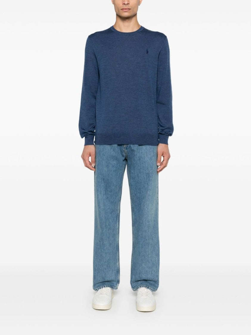 A fine knit crew neck sweater in navy blue from Polo Ralph Lauren exemplifies timeless style. Long sleeves, ribbed cuffs, and hem add to its classic design, while an embroidered logo at the chest features the iconic Polo Pony motif. This versatile piece is ideal for layering or wearing solo, enhancing any casual wardrobe.