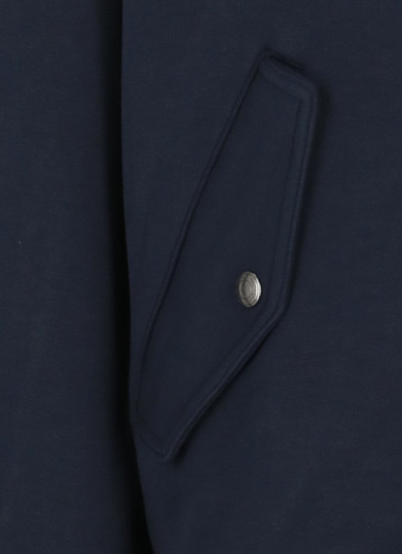 - Pockets: Zip pocket on left sleeve, two stud button pockets