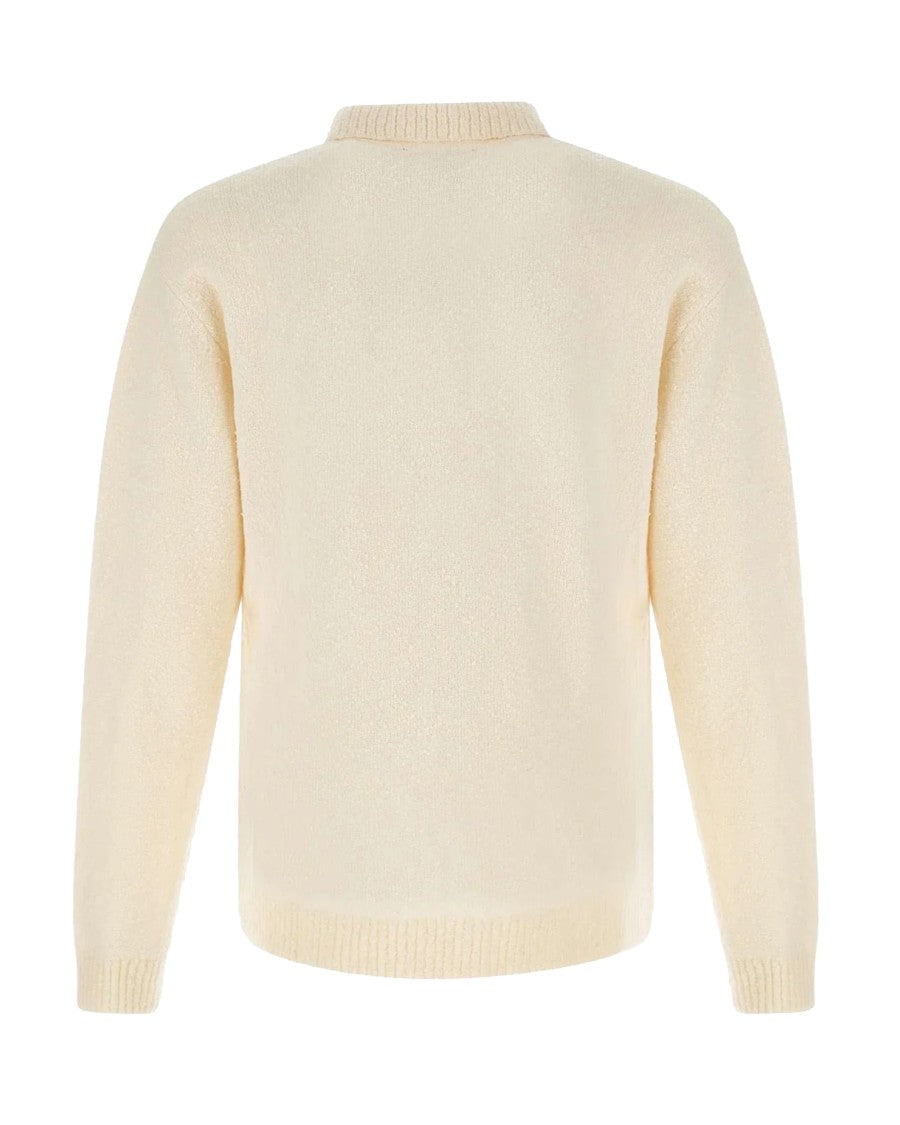 Represent presents a knit polo made from a luxurious cotton blend, featuring a classic collar with a V-neck opening. Ribbed details enhance the collar, cuffs, and hem, contributing to its refined aesthetic. The soft fabric showcases a subtle textured knit pattern in a sophisticated neutral tone, ideal for elevating everyday casual wear.