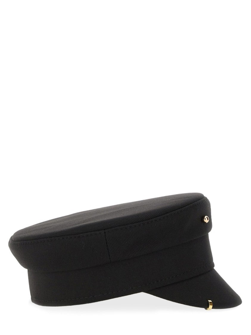 This structured baker boy hat from Ruslan Baginskiy is a fusion of contemporary design and craftsmanship. Made from a luxurious cotton blend, it features a flat, round crown and a short, stiff brim. The enchanting metallic piercings and a decorative logo on the front bring a distinct edge, making it a statement accessory for those who dare to be different. Perfect for adding a touch of bold sophistication to casual ensembles.