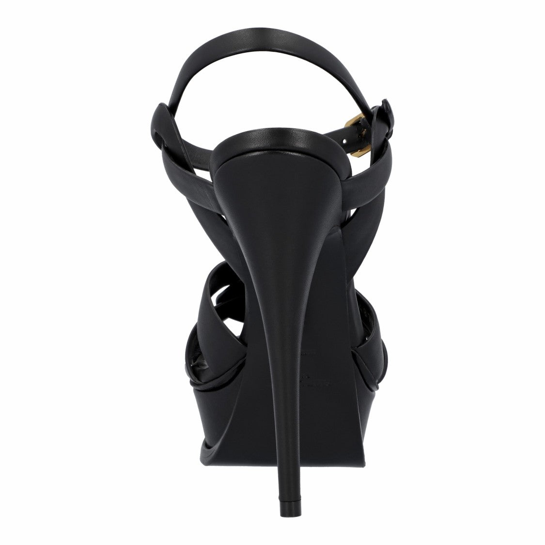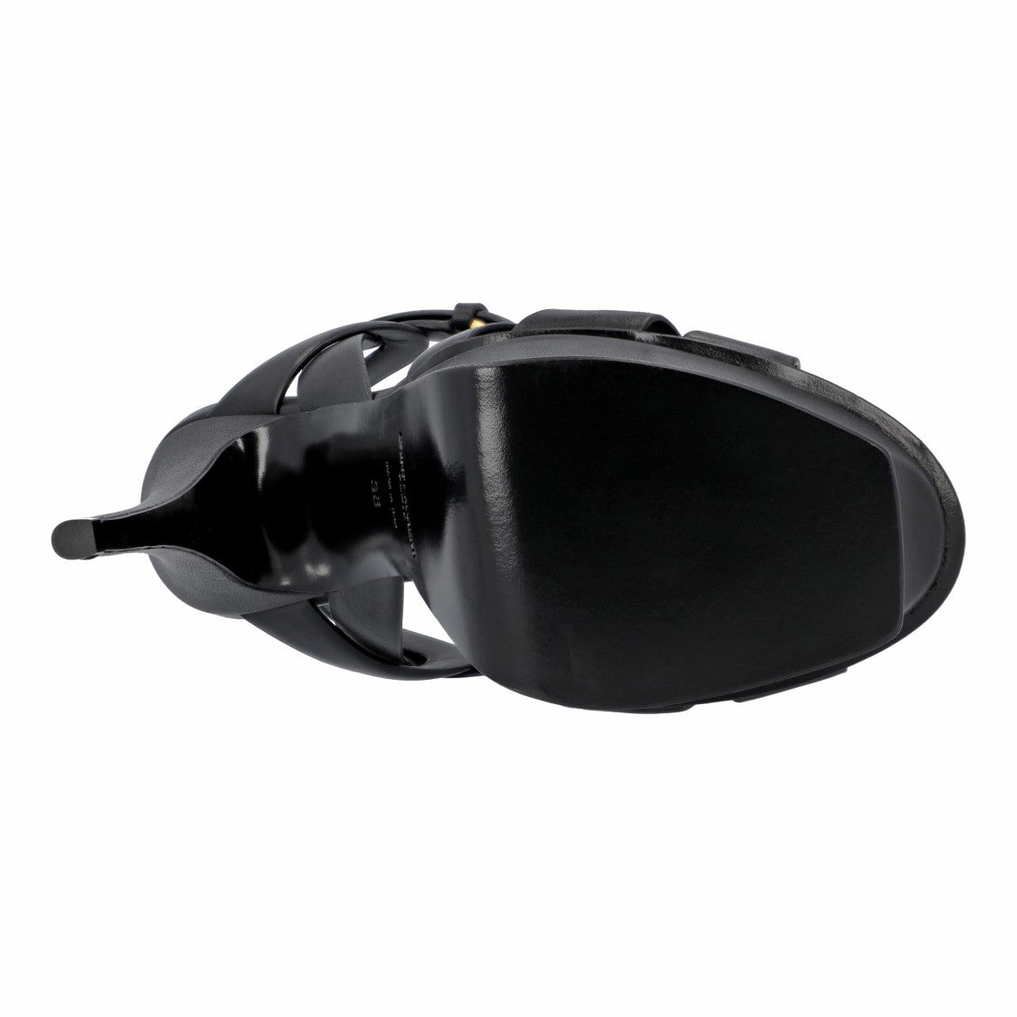 Saint Laurent's Tribute Platform Sandals redefine elegance with their striking design. The braided upper in sumptuous calf leather beautifully complements the adjustable ankle strap, ensuring a secure fit. Elevated by a 13.5 cm stiletto heel and platform sole, these sandals exude sophistication, embodying the essence of luxury footwear. Each pair is expertly crafted in Italy, reflecting the brand's commitment to quality and craftsmanship.