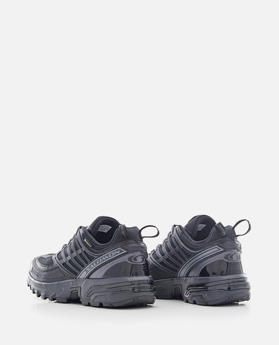Salomon presents the Acs Pro GTX Black Sneakers, an embodiment of performance and modernity. Crafted from resilient black fabric, these sneakers feature a rubber sole for exceptional traction. The innovative quicklace system, enhanced with Kevlar laces, ensures a secure and adjustable fit, ideal for both athletic pursuits and casual wear.