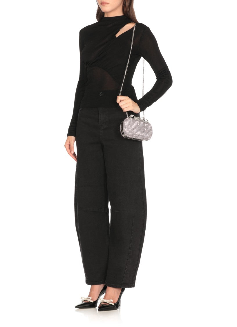 Self-Portrait introduces a stunning lilac clutch bag that radiates glamour. Its rounded shape is enhanced by shimmering strass embellishments and a delicate strass bow detail. The bag includes a single chain shoulder strap, making it versatile for both evening events and everyday use.