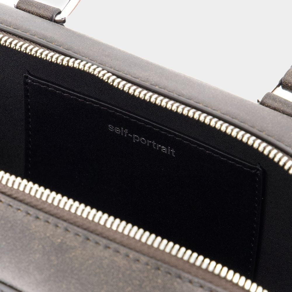 Self-Portrait's black mini tote bag features a structured silhouette that exudes sophistication. Decorative bows adorned with sparkling crystals add a luxurious touch. A secure zip closure and sturdy handles provide ease of movement, making it an ideal accessory for the discerning individual.